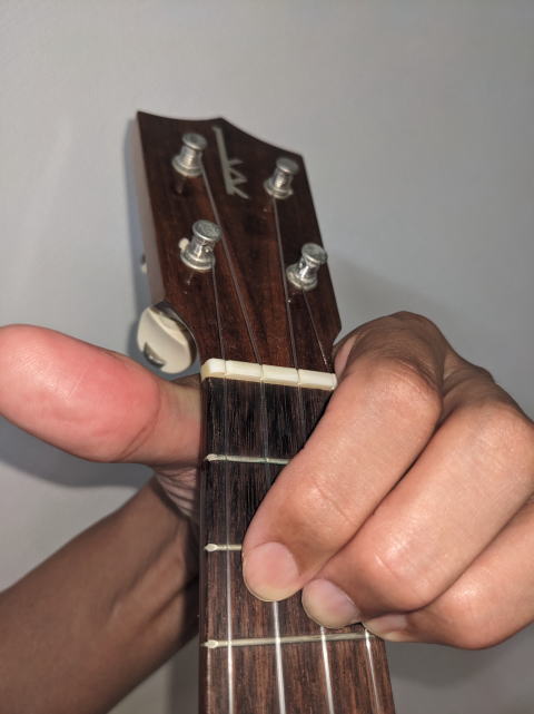 ウクレレ コードCm の押さえ方の写真です