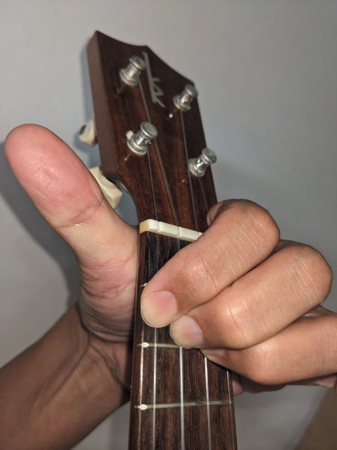 ウクレレ コードD の押さえ方の写真です