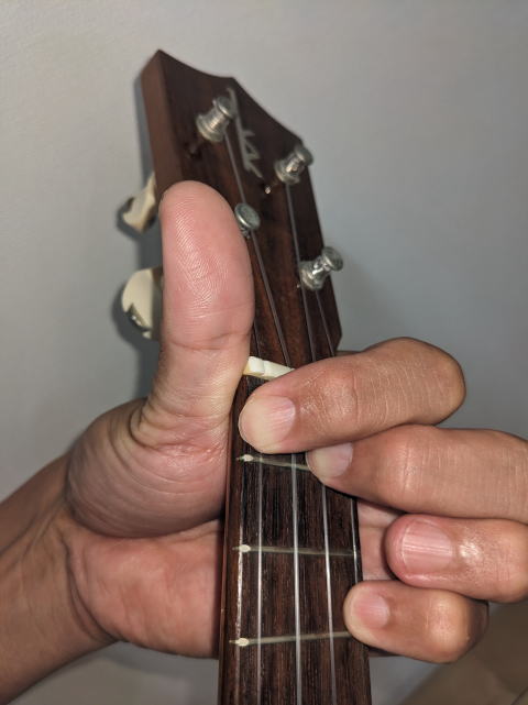 ウクレレ コードFm の押さえ方の写真です